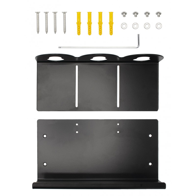 Triple black matte metal holder for Bube Botanicals bottles. It works with a security key, ensuring controlled and safe usage. It is ultra-resistant, designed to provide durability and strength in high-traffic environments, ideal for bathrooms or establishments looking for a practical and secure option.